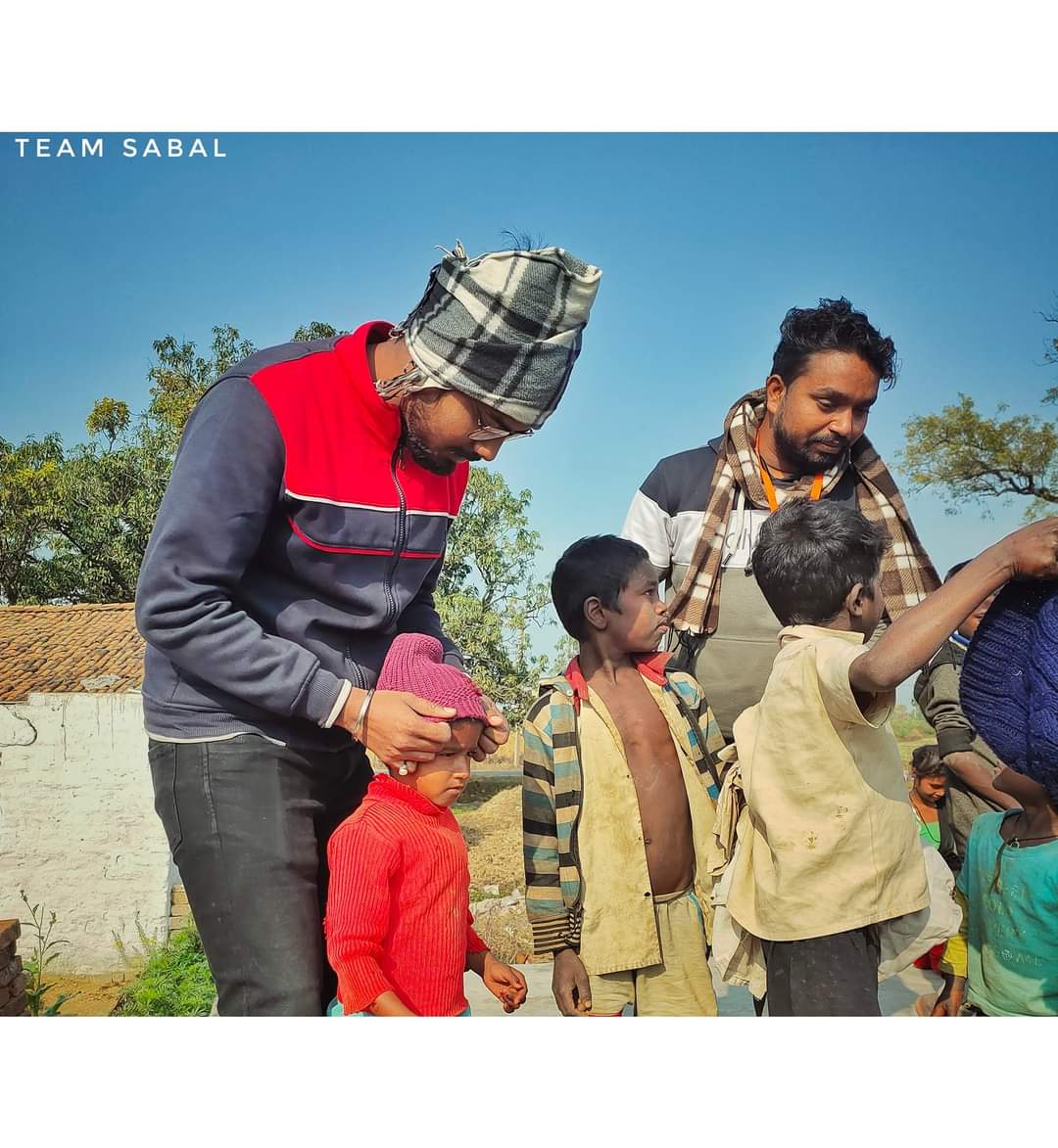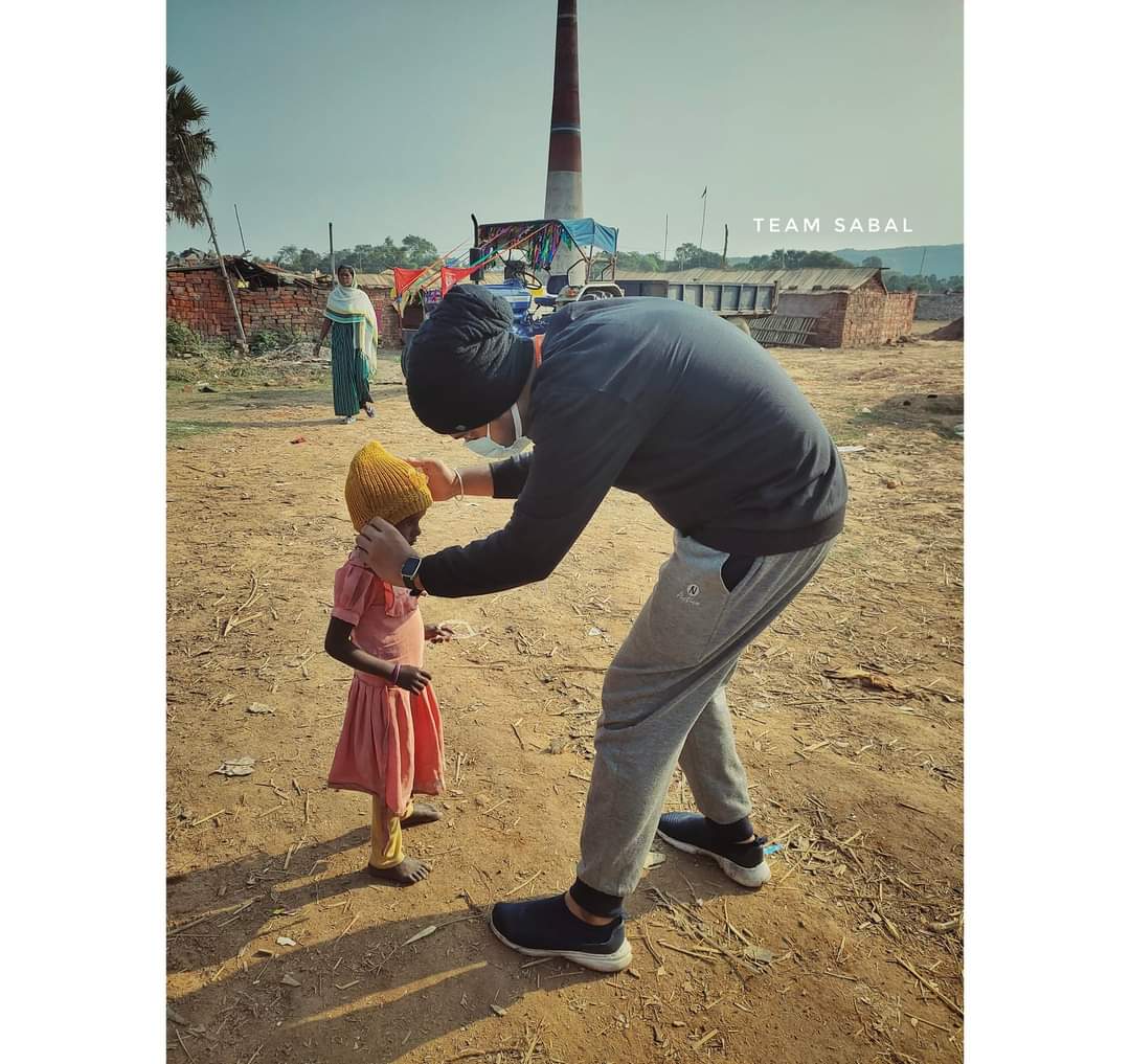 playing with the poor children to make them smile
